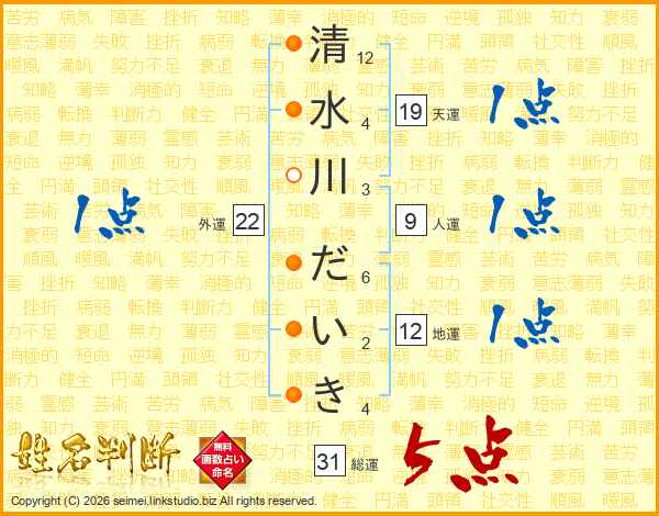 清水川だいきさんの総運は31画の5点!