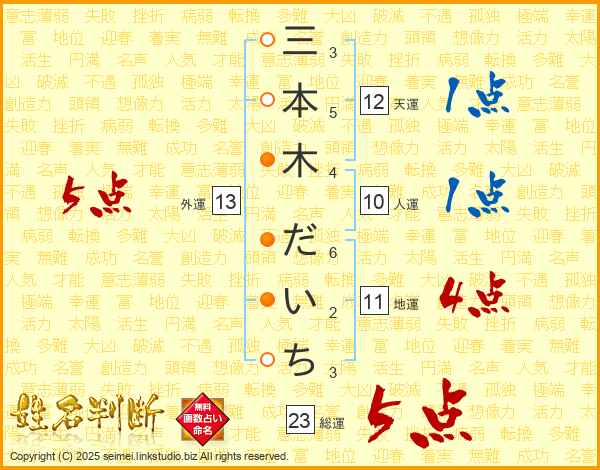 三本木だいちさんの総運は23画の5点!