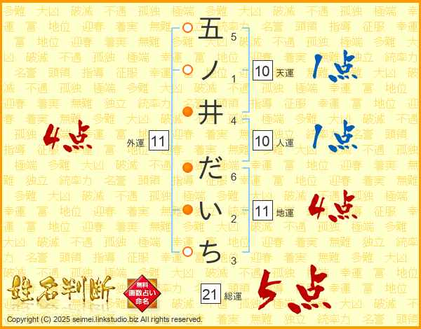 五(5画)ノ(1画)井(4画) だ(6画)い(2画)ち(3画)