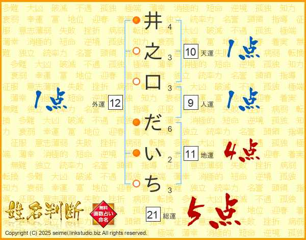 井之口だいちさんの総運は21画の5点!