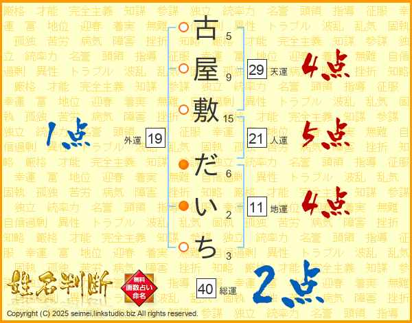 古屋敷だいちさんの総運は40画の2点!