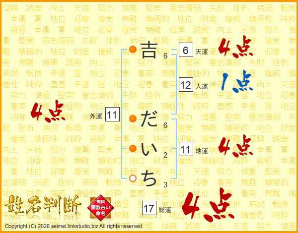 吉だいちさんの総運は17画の4点!