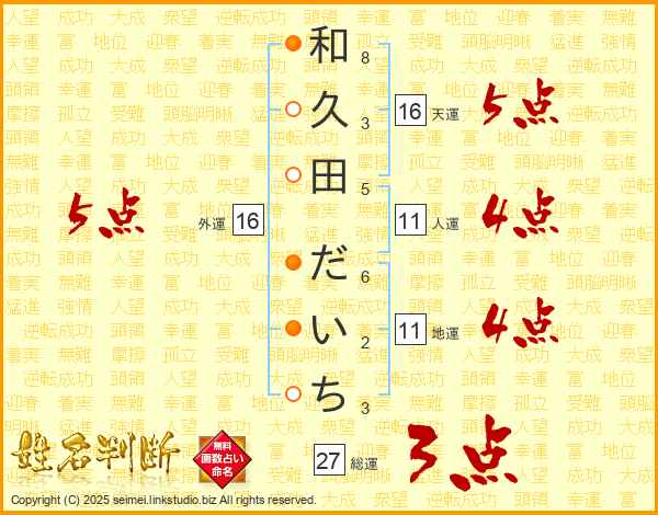 和(8画)久(3画)田(5画) だ(6画)い(2画)ち(3画)