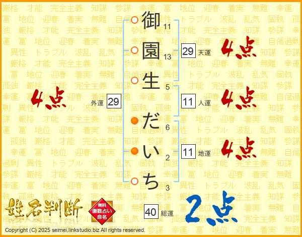 御園生だいちさんの人運は11画の4点!