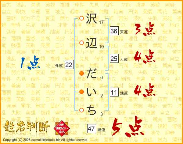 沢辺だいちさんの総運は47画の5点!