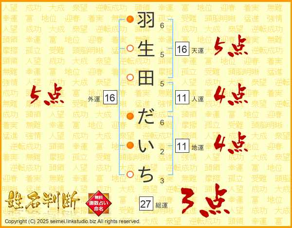 羽生田だいちさんの外運は16画の5点!
