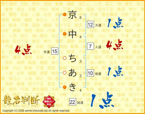 京中ちあきさんの外運は15画の4点!
