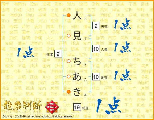 人見ちあきさんの総運は19画の1点!