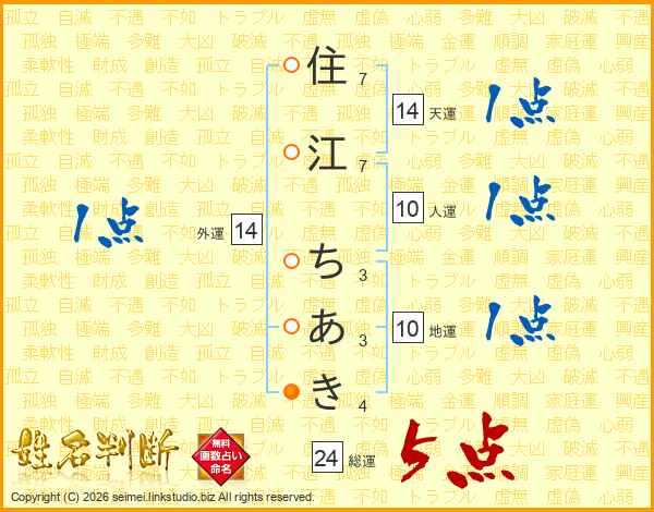 住江ちあきさんの総運は24画の5点!
