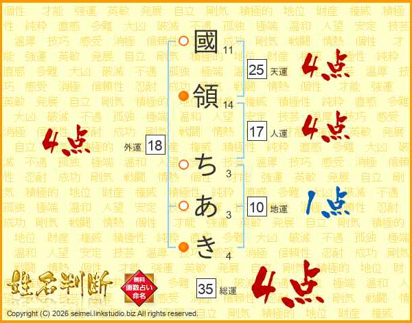 國領ちあきさんの天運は25画の4点!