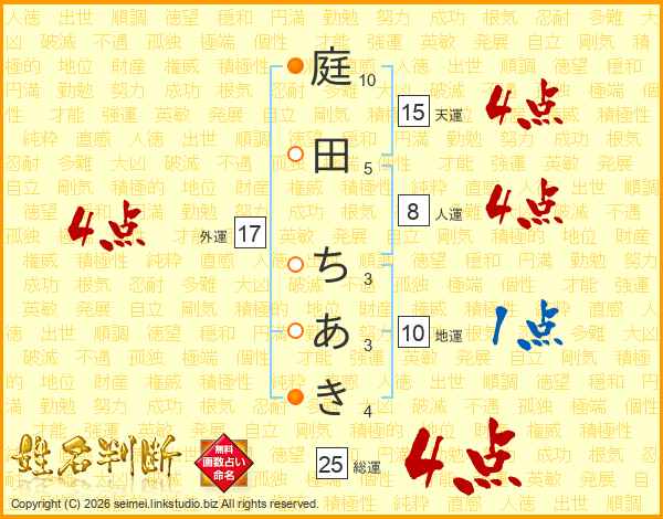 庭(10画)田(5画) ち(3画)あ(3画)き(4画)
