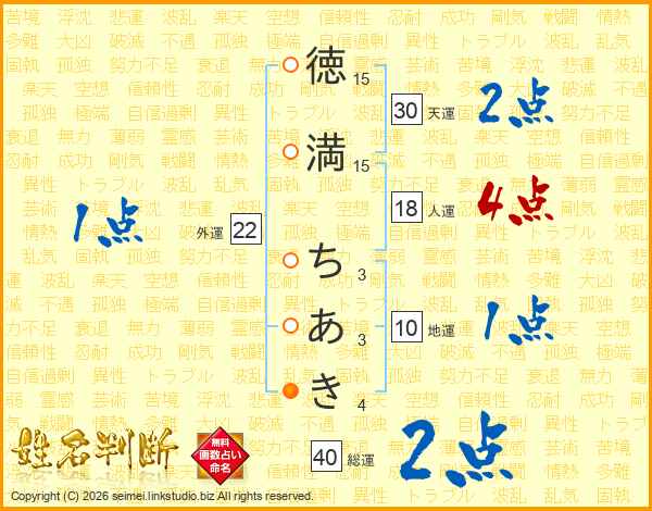 徳満ちあきさんの人運は18画の4点!