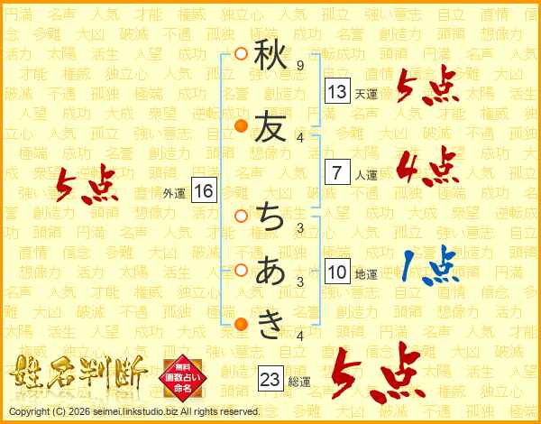秋友ちあきさんの外運は16画の5点!