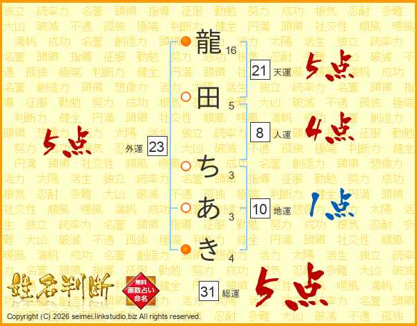 龍田ちあきさんの総運は31画の5点!
