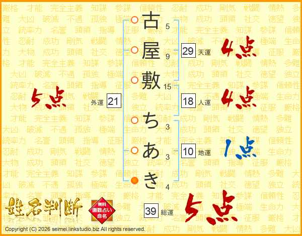 古屋敷ちあきさんの外運は21画の5点!