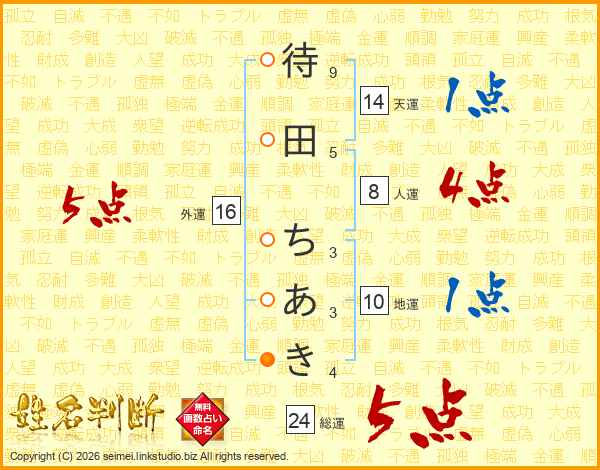 待田ちあきさんの外運は16画の5点!