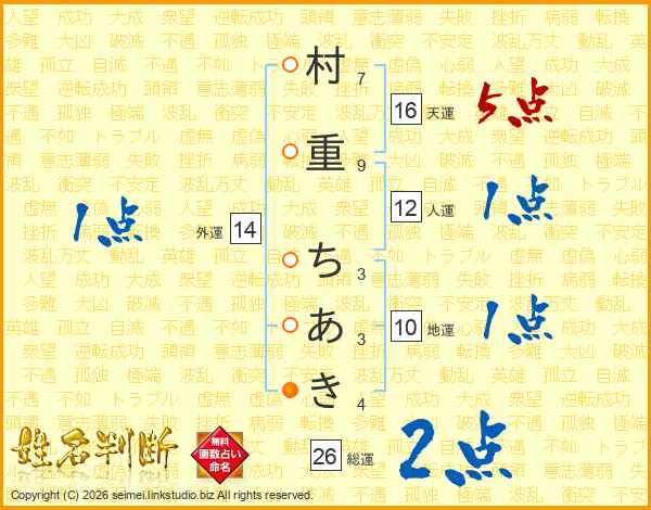 村重ちあきさんの総運は26画の2点!