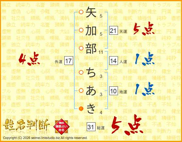 矢(5画)加(5画)部(11画) ち(3画)あ(3画)き(4画)
