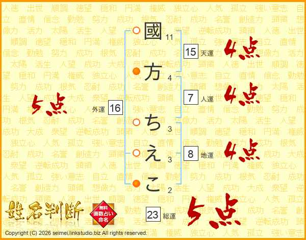 國方ちえこさんの総運は23画の5点!