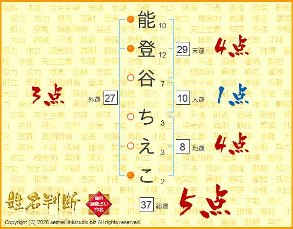 能(10画)登(12画)谷(7画) ち(3画)え(3画)こ(2画)