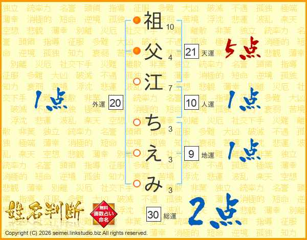 祖(10画)父(4画)江(7画) ち(3画)え(3画)み(3画)