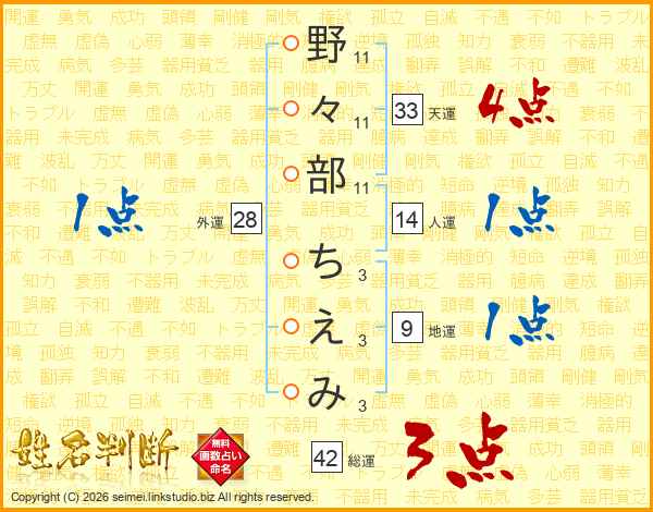 野々部ちえみさんの天運は33画の4点!