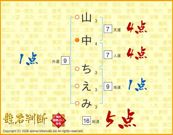 山(3画)中(4画) ち(3画)え(3画)み(3画)