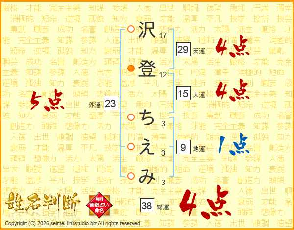 沢登ちえみさんの総運は38画の4点!