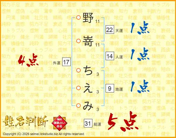 野嵜ちえみさんの総運は31画の5点!