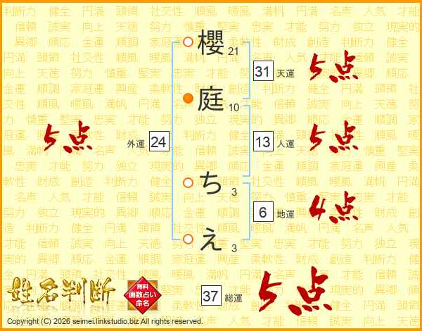 櫻庭ちえさんの総運は37画の5点!