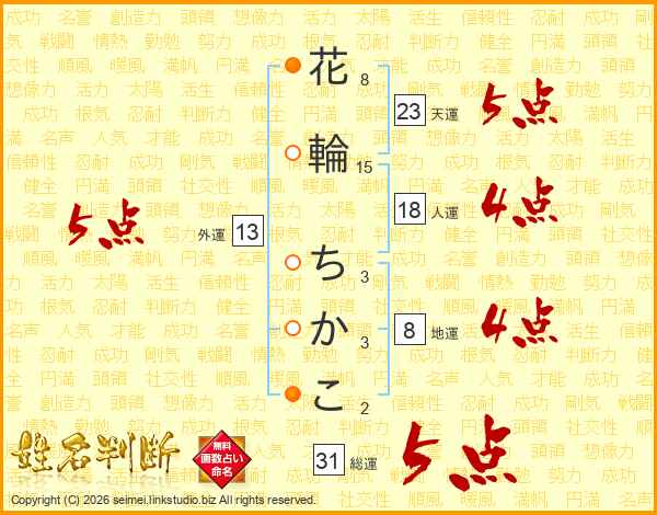 花輪ちかこさんの総運は31画の5点!