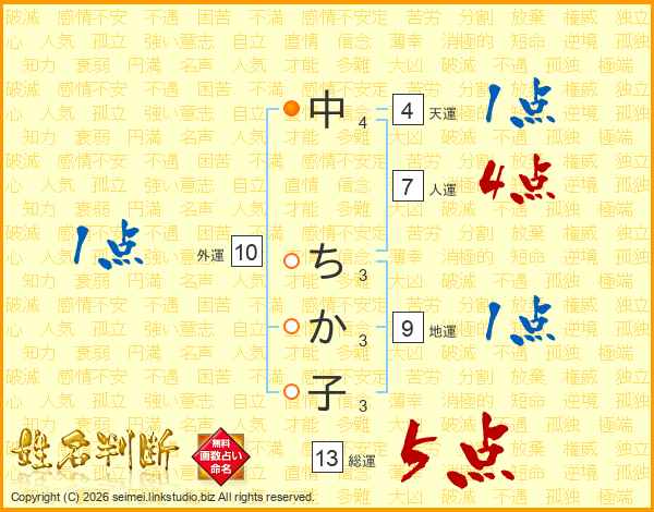 中ちか子さんの総運は13画の5点!