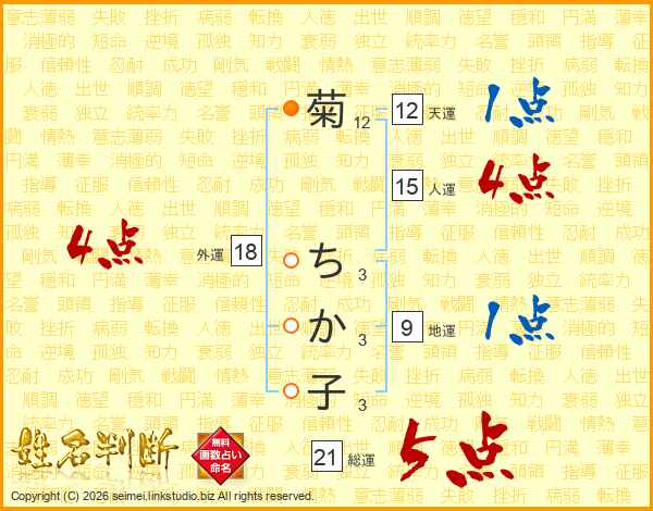 菊ちか子さんの総運は21画の5点!
