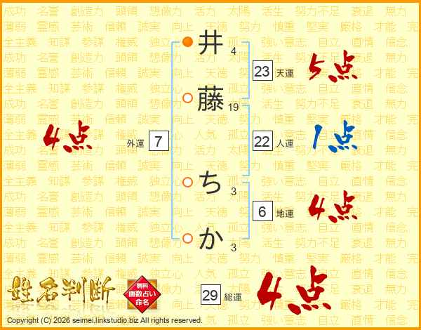 井藤ちかさんの総運は29画の4点!