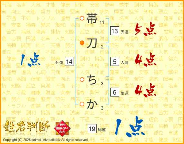 帯刀ちかさんの総運は19画の1点!