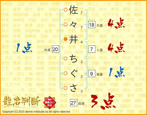 佐々井ちぐささんの総運は27画の3点!