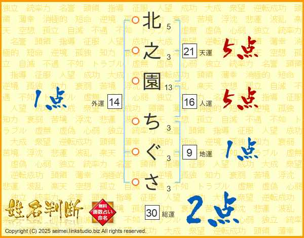 北之園ちぐささんの総運は30画の2点!