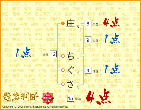 庄(6画) ち(3画)ぐ(3画)さ(3画)