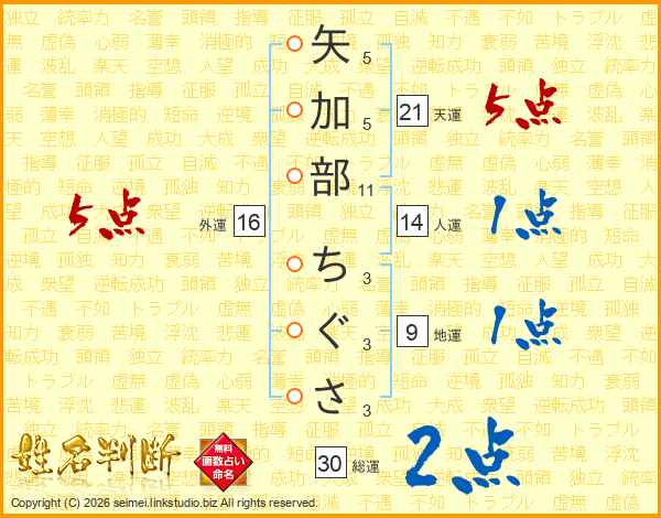 矢(5画)加(5画)部(11画) ち(3画)ぐ(3画)さ(3画)