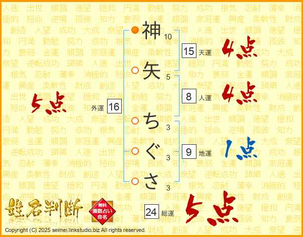 神(10画)矢(5画) ち(3画)ぐ(3画)さ(3画)