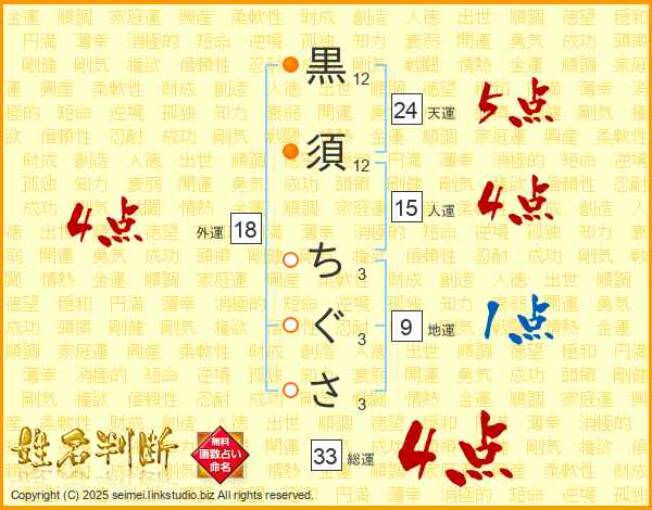 黒(12画)須(12画) ち(3画)ぐ(3画)さ(3画)