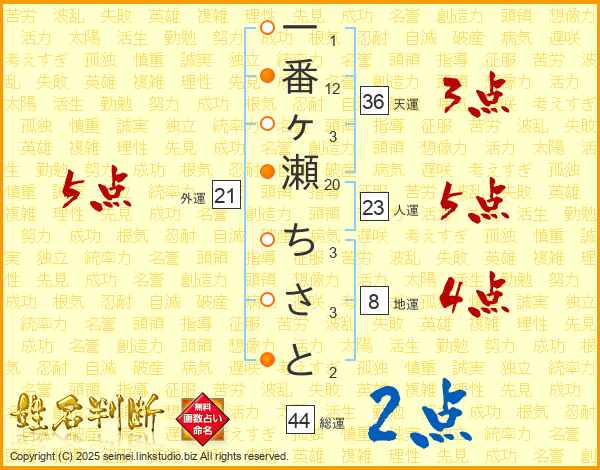 一番ヶ瀬ちさとさんの総運は44画の2点!