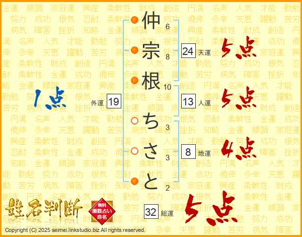 仲宗根ちさとさんの総運は32画の5点!