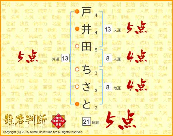 戸井田ちさとさんの天運は13画の5点