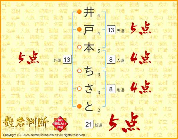 井戸本ちさとさんの天運は13画の5点!