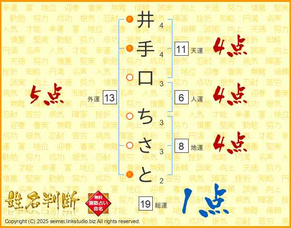 井手口ちさとさんの総運は19画の1点!