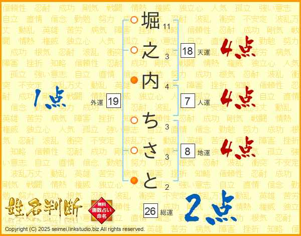 堀之内ちさとさんの総運は26画の2点!