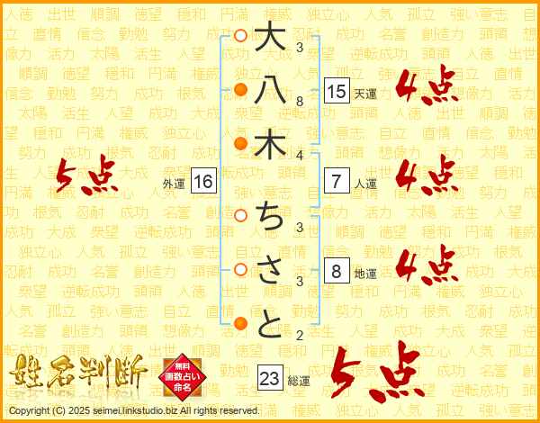 大(3画)八(8画)木(4画) ち(3画)さ(3画)と(2画)