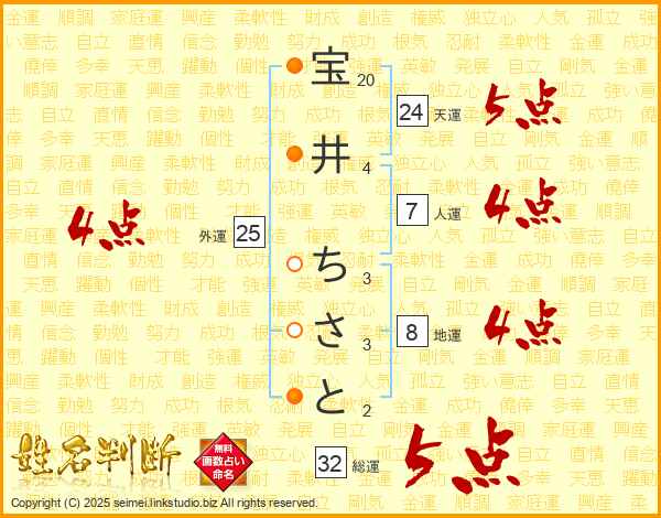 宝井ちさとさんの外運は25画の4点!