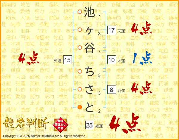 池ヶ谷ちさとさんの総運は25画の4点!